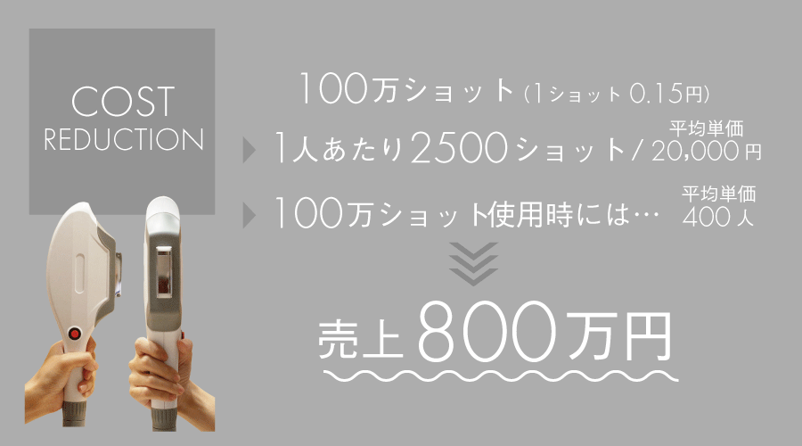 計算方法は単純で、1ショット当たりのコストに「どれだけ照射したかの回数」をかけ合わせたものが答えになります。