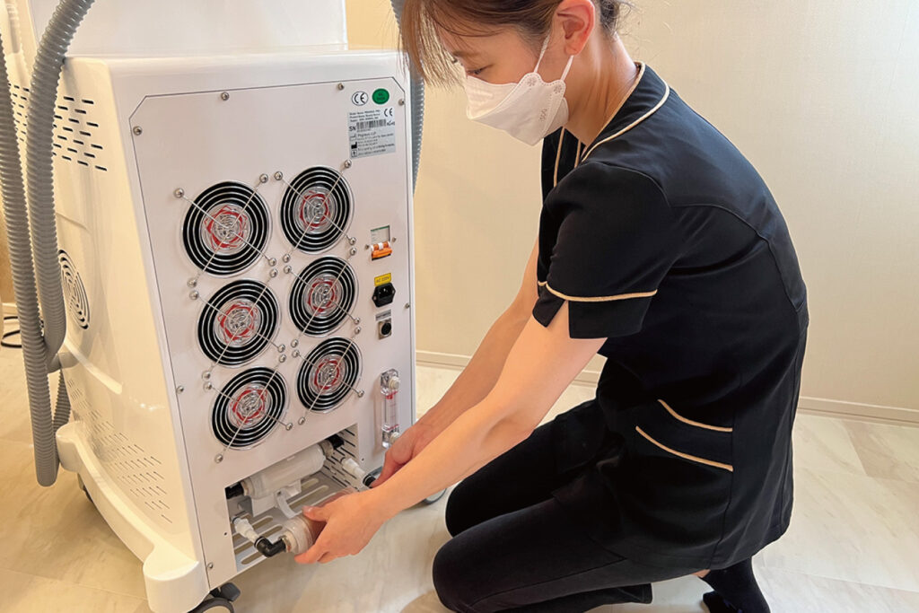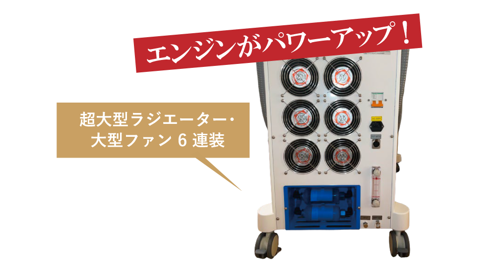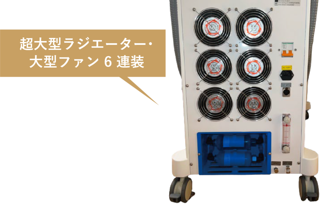 新機能「パワフル冷却」機能搭載で連続稼働時でも、よりハンドピースの冷えが衰えにくくなり、いつでも快適に施術を行うことが可能です。