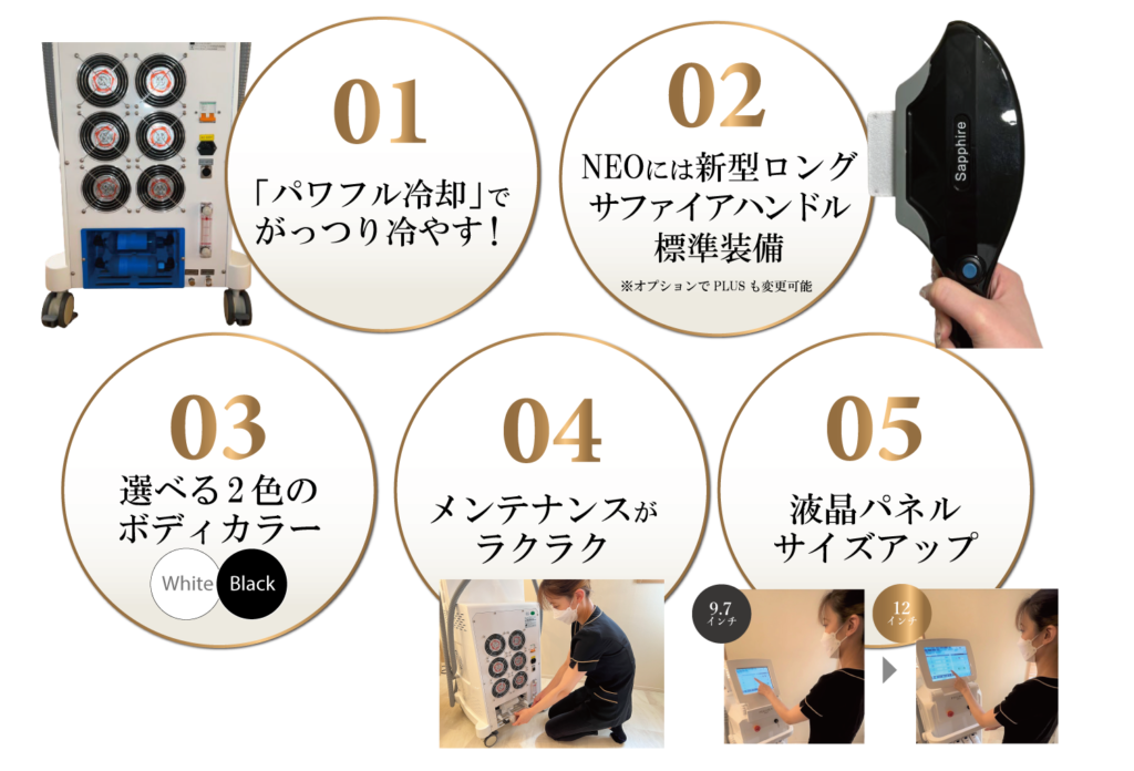 - フェイシャルにも力を入れたいサロン様用にNEOでICE RFハンドルを含んだ構成にチェンジ