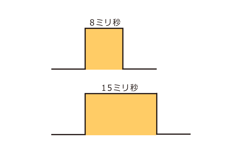 パルス幅についても、多くの小型機が6~10ミリ秒のスペック。これでは「無痛×効果」は期待薄なのです。当社は、小型機pixieシリーズから、PEGASUSシリーズまで「パルス幅15ミリ秒(=ロングパルス)」を実現しています。